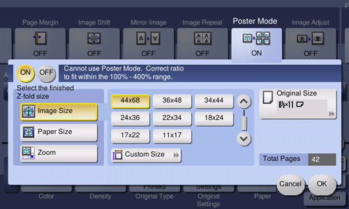[Select the finished Z-fold size] | Specify the finished size by using any of [Image Size], [Paper Size] and [Zoom].
