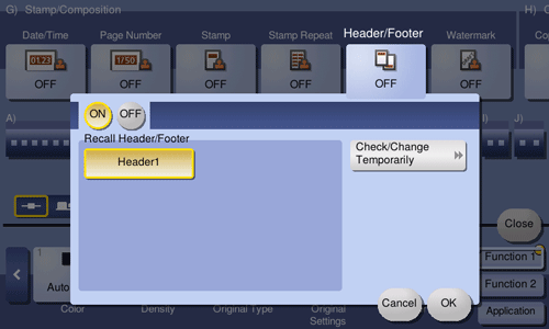If necessary, check or temporarily change the details of the program that is selected in [Recall Header/Footer].