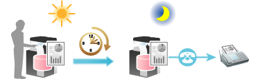 If the machine power is not activated at the start time, fax transmission will not start. The fax transmission starts just after the machine power is turned on.