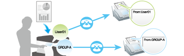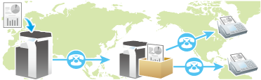 The Relay Distribution function sends a fax to a relay machine, which distributes the received fax to a pre-registered group of destinations.