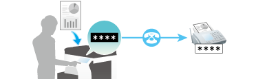 The Password TX is a function that sends a fax with a password. It is used to send faxes to a device on which fax peers are restricted by passwords (a device with Closed Network RX enabled).