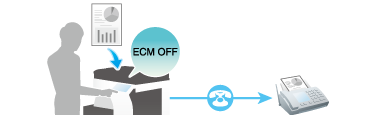 By default, this machine uses ECM for transmission. If the noise level is high, communication may take a little longer than communication that does not use ECM checking. To reduce the transmission time, you can send faxes with ECM turned off. However, an image error or communication error may occur depending on the specified communication time value, so change the value to suit conditions.