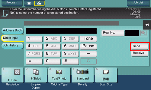 Check that [Send] is selected and specify a fax number.