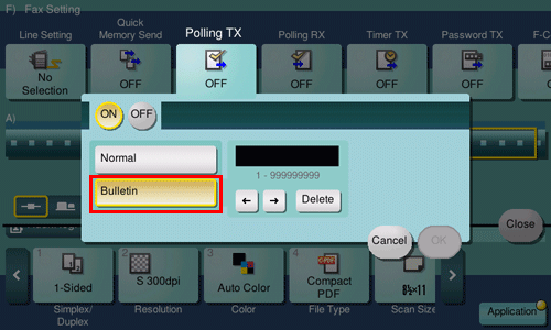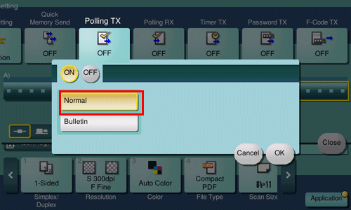 Tap [Application] - [Fax Setting] - [Polling TX], and tap [ON].