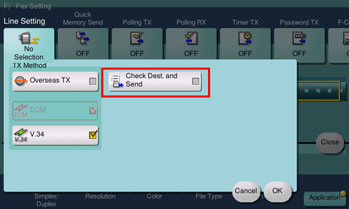 Set [Check Dest. and Send] to ON, and tap [OK].