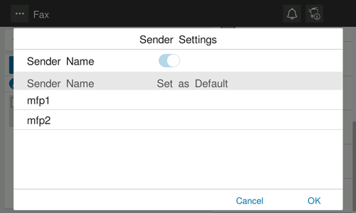 Changes on [Sender Settings] are only temporary. It is useful to specify frequently used sender names as defaults when registering sender names.
