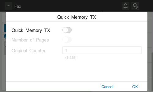 Quick Memory TX is a method to start sending a fax as soon as one page of the original has been scanned. The total number of sent pages can be entered in the sender record.