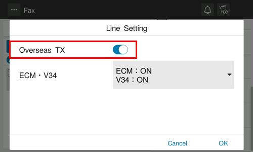 Set [Overseas TX] to ON, and tap [OK].