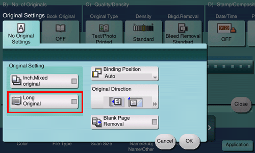 [Long Original] | Select this option to scan an original that has a longer feeding direction than the standard size using the ADF. |