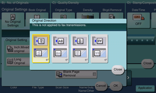 When scanning a 2-sided original, specify the original loading direction so that the vertical direction of the scanned original is set correctly.