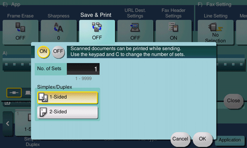 [ON]/[OFF] | Select [ON] to perform sending and printing at the same time. |