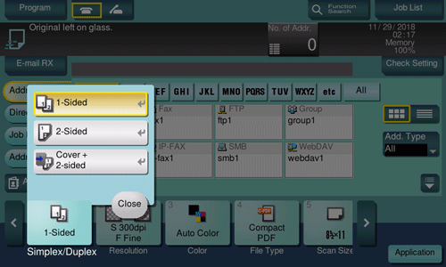 Select the side to scan the original (Simplex/Duplex).
