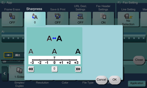 Specifying [Sharpness] sharpen the edges of images such as text in the table and graphics to improve legibility. This function also smoothens the rough contours of an image or sharpens blurred images.