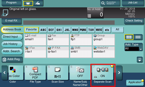 If the number of original sheets is so large that they cannot be loaded into the ADF at the same time, you can load them in several batches and handle them as one job. You can also scan the original using both ADF and Original Glass alternately.