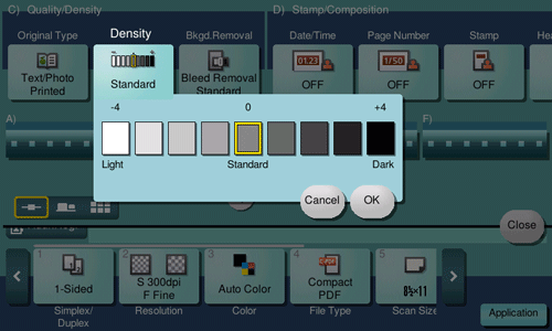 Adjust the density (Dark or Light) to scan the original.