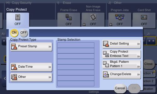 [Copy Protect Type] | Select a stamp used. The date and time can also be printed.
