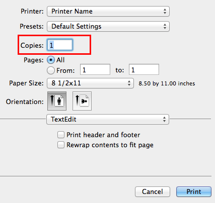 In [Copies:] in [Copies & Pages], specify the number of copies you want to print.
