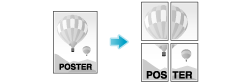 In [Poster Mode:] in [Layout / Finish], select "N N". For example, when you select [2 2], one page of the original image is enlarged, divided, and printed on four sheets.