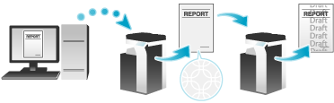 For example, by using the print command once, you can print a submission document on high-quality color paper loaded in Tray 1 and print your copy on recycled paper loaded in Tray 2.