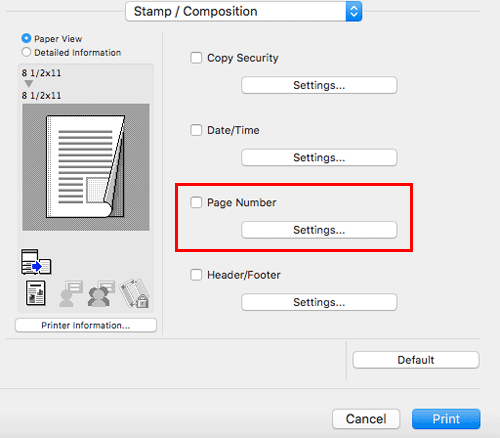 In [Stamp / Composition], select the [Page Number] check box.