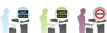 Installing user authentication allows you to restrict available functions for each user. For example, you can carry out operations so that all functions are available for specific users while making the Web browser unavailable to other users. Configuring settings based on the business contents of users prevents an unsafe divulging of information.