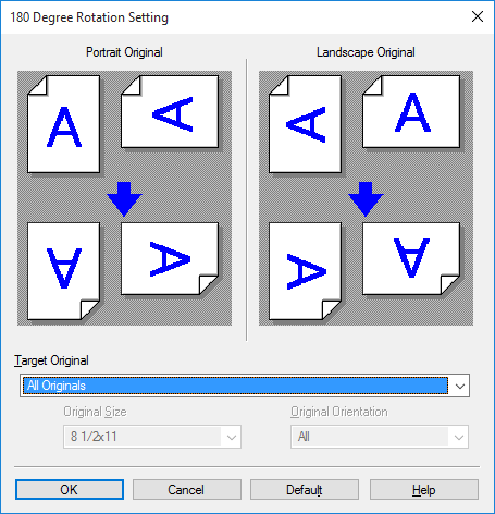 Specify the original to rotate at 180 degrees, then click [OK].