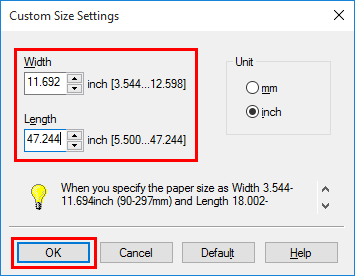 5. Specify the length and width of the banner paper, and click [OK].