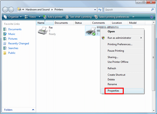 In Windows Server 2008, right-click the icon of the installed printer, then click [Properties].