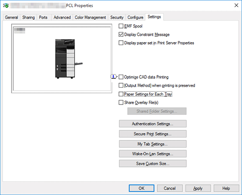 [Paper Settings for Each Tray] | Clear this check box to select the paper type in [Paper Type] when [Paper Tray] is not set to [Auto] in the [Basic] tab. |