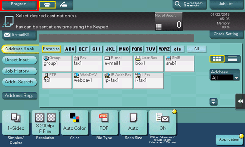 Program is a function to register a combination of frequently used option settings as a recall key. The program to be registered in scan/fax mode is referred to as a scan/fax program.