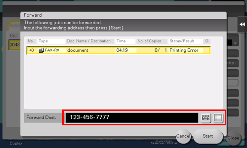 3. Select a job to be forwarded, specify the forwarding destination and also tap [OK].