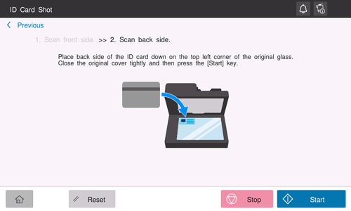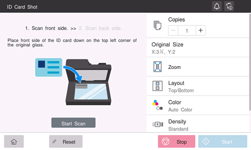 To copy various cards such as a health insurance card and license, use the ID card copy mode. By carrying out a simple operation, you can copy the front and back of a card side by side, on the same side of a single sheet.