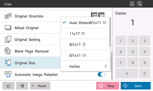 When the size of the original is not detected correctly, specify the size of the original you want to scan.