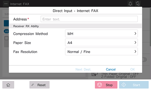 [Receiver RX Ability] | Specify the Internet fax receiving ability of the recipient.