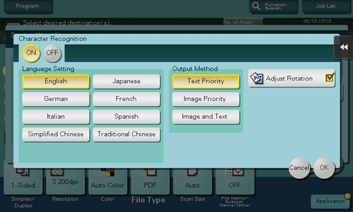 • When [Language Setting] is selected, if the vertical and horizontal directions are mixed in the same page of an original, they are recognized as either one direction.