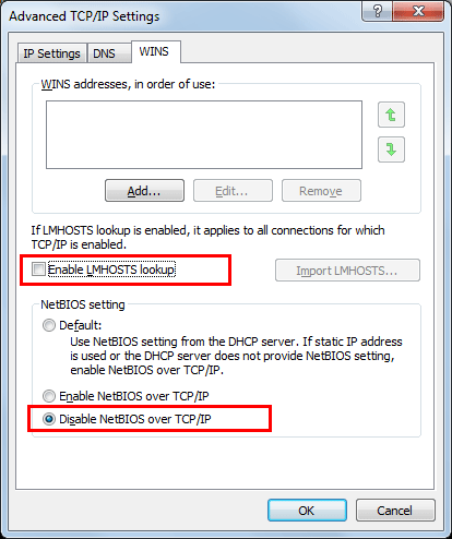 In [NetBIOS Settings], select [Disable NetBIOS over TCP/IP].