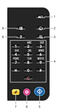Enter numeric values such as the number of copies or zoom ratio. This keypad is also used to select a numbered setting key.