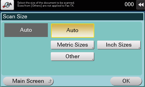 [Other] | Select this option to scan a postcard or an original other than a metric- or inch-size original. Tapping [Other] enables you to select each standard size. |