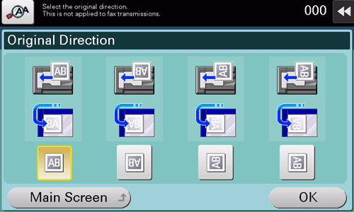 Tap [Scan Settings] - [Original Settings] - [Original Direction] to specify the original loading direction.