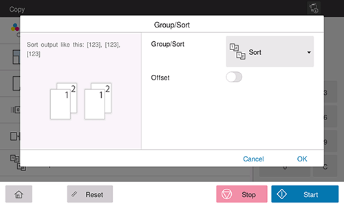 Q. Can I use the offset function without installing a Finisher or Job Separator on the machine?