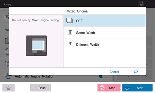 [Original Size] | Select the size of the original to be copied. |