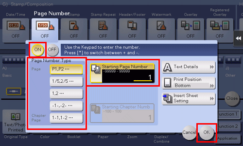 [Other] | [Job Number] | Select Yes to print the copy job number. |