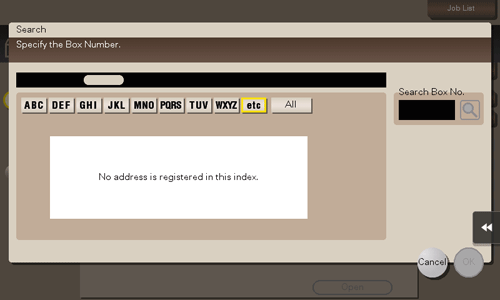 Specify the User Box number to search for the target User Box. The User Boxes are displayed based on search characters you have specified during User Box registration.
