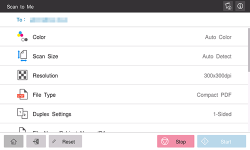 Selecting [Scan to Me] on the home screen allows you to easily send an E-mail only to you.