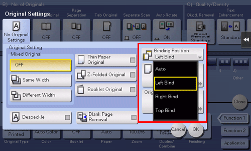 [Left Bind] | Select this option when the binding position is set to the left of the original. |