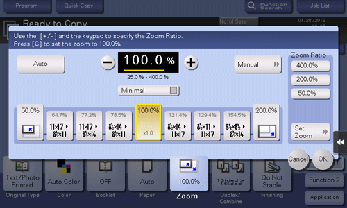 [Zoom Ratio] | Makes a copy at the registered zoom ratio. If you tap [Set Zoom], you can change the registered zoom ratio. |