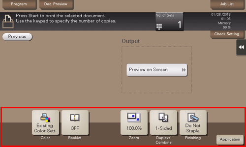 You can combine multiple files into a single file and print them at the same time. If you select multiple files and set [OFF], you cannot use the [Basic Setting] and [Application Setting] options.