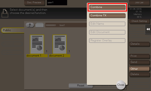 When printing multiple files at the same time, you can combine those files and handle them as a single job. This is called the Combine printing.