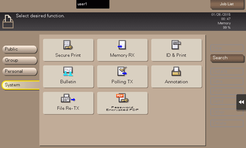 The System User Box is pre-provided in this machine. It is used to store files in this machine for fax or print functions. The user can operate files in the System User Box when necessary.