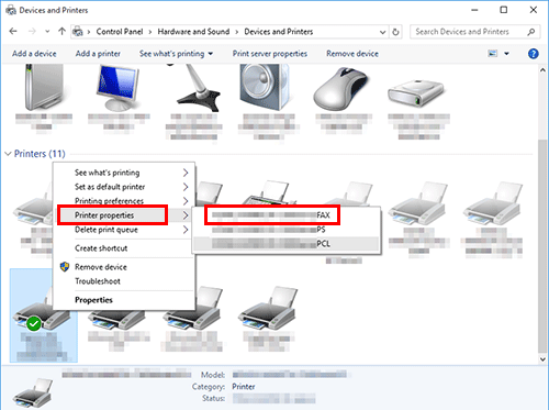 • Right-click the icon of the installed printer, and from [Printer properties], click the displayed printer name.